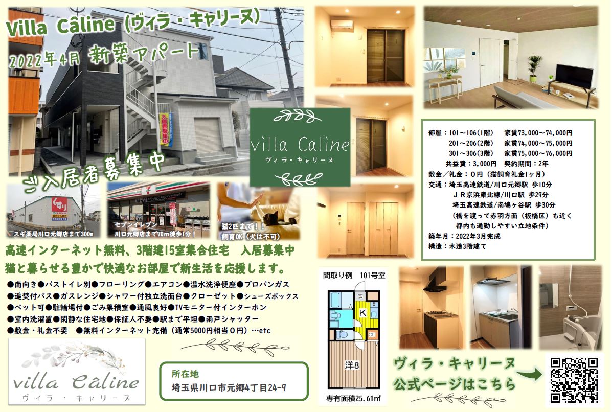 2022年4月20日以降入居可能 Villa Caline (ヴィラ・キャリーヌ)